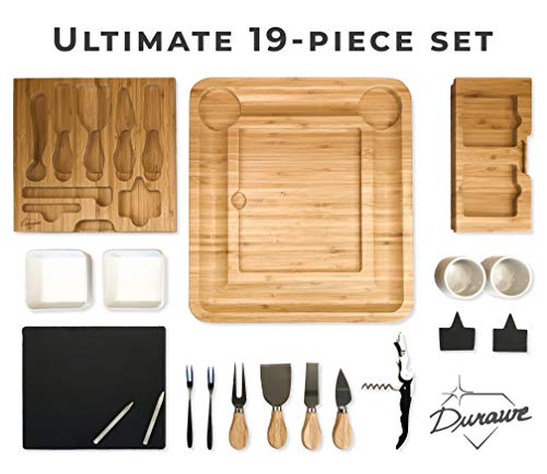 Organic Bamboo Cheese Board Set with Knife, Bowls & Corkscrew